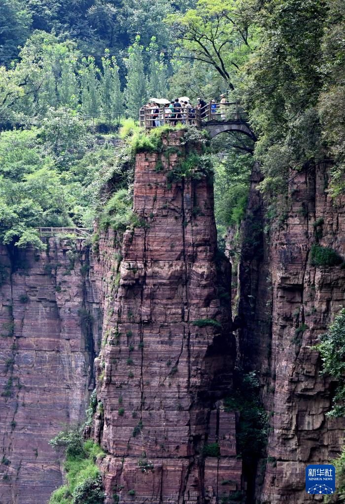 8月16日,游客参观了河南省旺格山风景区古里村的观察平台。从暑假开始,恩南·旺克斯山(Enan Wangxian Mountain)风景如画的地区一直在护送旅游峰。洪阳悬崖的伟大大炮位于河南山脉的Huikisian市的旺格山风景区,可提供壮丽的景色,壮丽,宏伟,危险和奇怪的游客。照片:新闻社记者的Zhu Xiang摄
